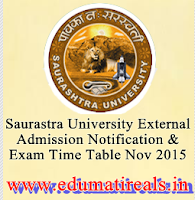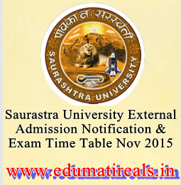 Saurastra University External Admission Notification & Exam Time Table Nov 2015 | Now Available