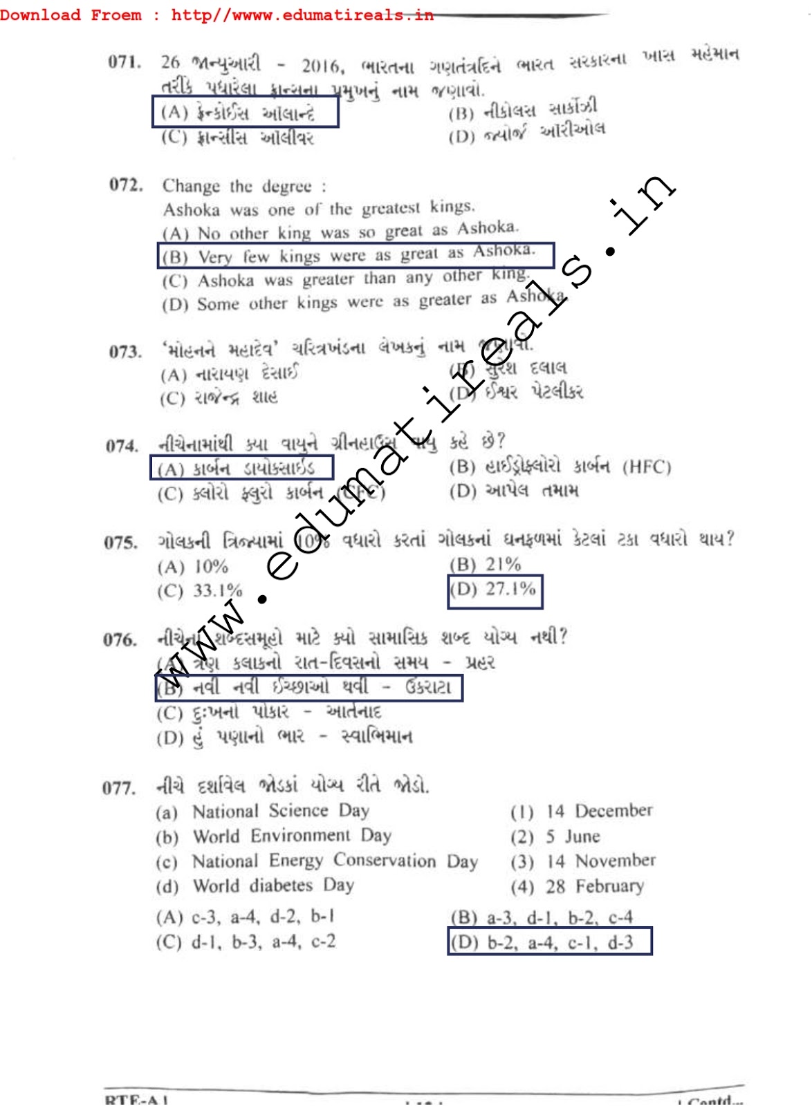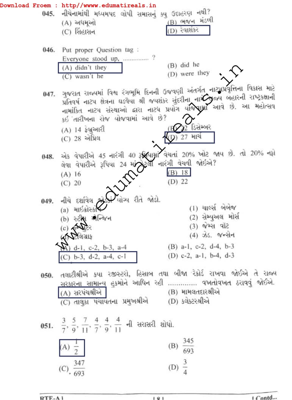 Revenue Talati Today's Paper Available Here: This question paper is Revenue Talati written examination. We have tried to make questions as per its official marking system. I hope this